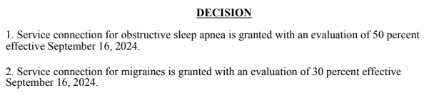 Initially, I received a denial decision on my claim. I then reached out to Dr. Drew to get some advice on how to go about this denial and he immediately advised me to file for Higher level review, which I did. Two weeks after my informal conference with the DRO, I received the Decision letter. On the letter, the Decision Review Officer reviewed my complete C-file and found that it is sufficient for rating purposes and there was no duty to assist errors noted. And guess what? The DRO cited on the decision letter Dr. Drew Brennes’ complete and detailed medical opinion (Nexus) rationale and concluded that Dr. Drew’s medical opinion was more persuasive than the VA contractor C/P examiner’s opinion, because it was based on thorough review on my relevant military and personal history, and contained a more convincing rationale. The decision: Service Connection for Obstructive Sleep Apnea secondary to Service Connected Rhinitis is GRANTED.