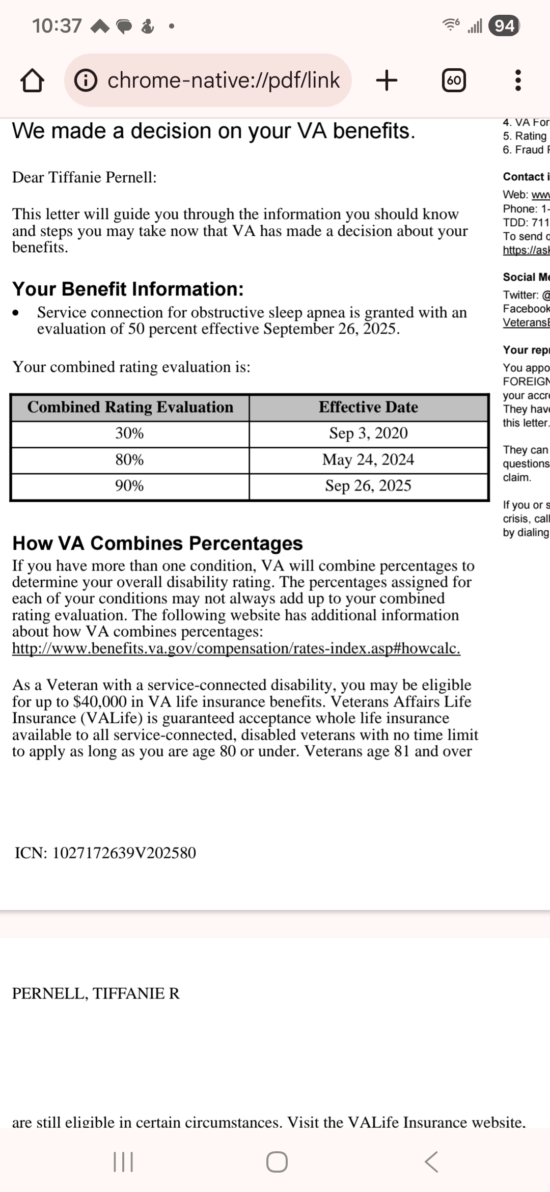 I cannot thank you enough for the Nexus Letter you wrote for my Cervical Spine conditions. After previous denials for these conditions, the Nexus Letter you wrote completely changed the trajectory of my claim, my life, and my well-being.