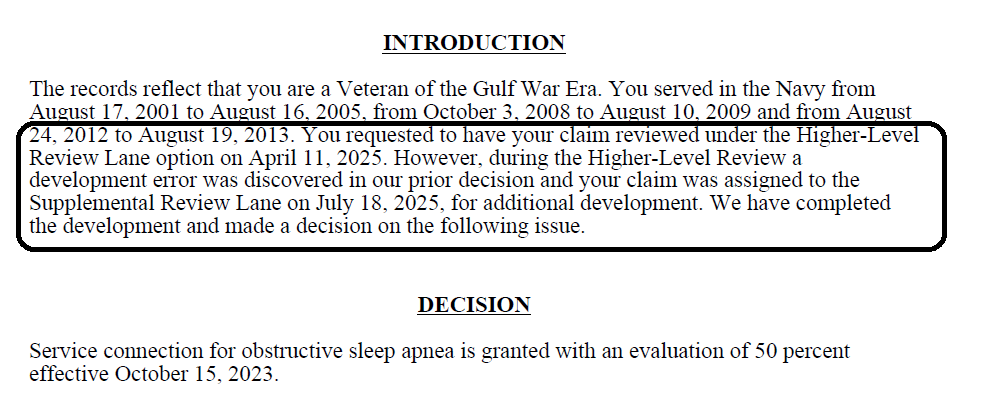 Here are the results of the decision letter I just received from the VA: